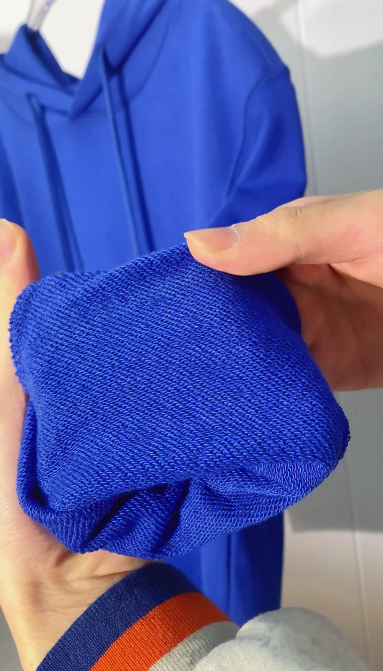 De capuchon en buidelzak geven een sportieve touch én extra functionaliteit.