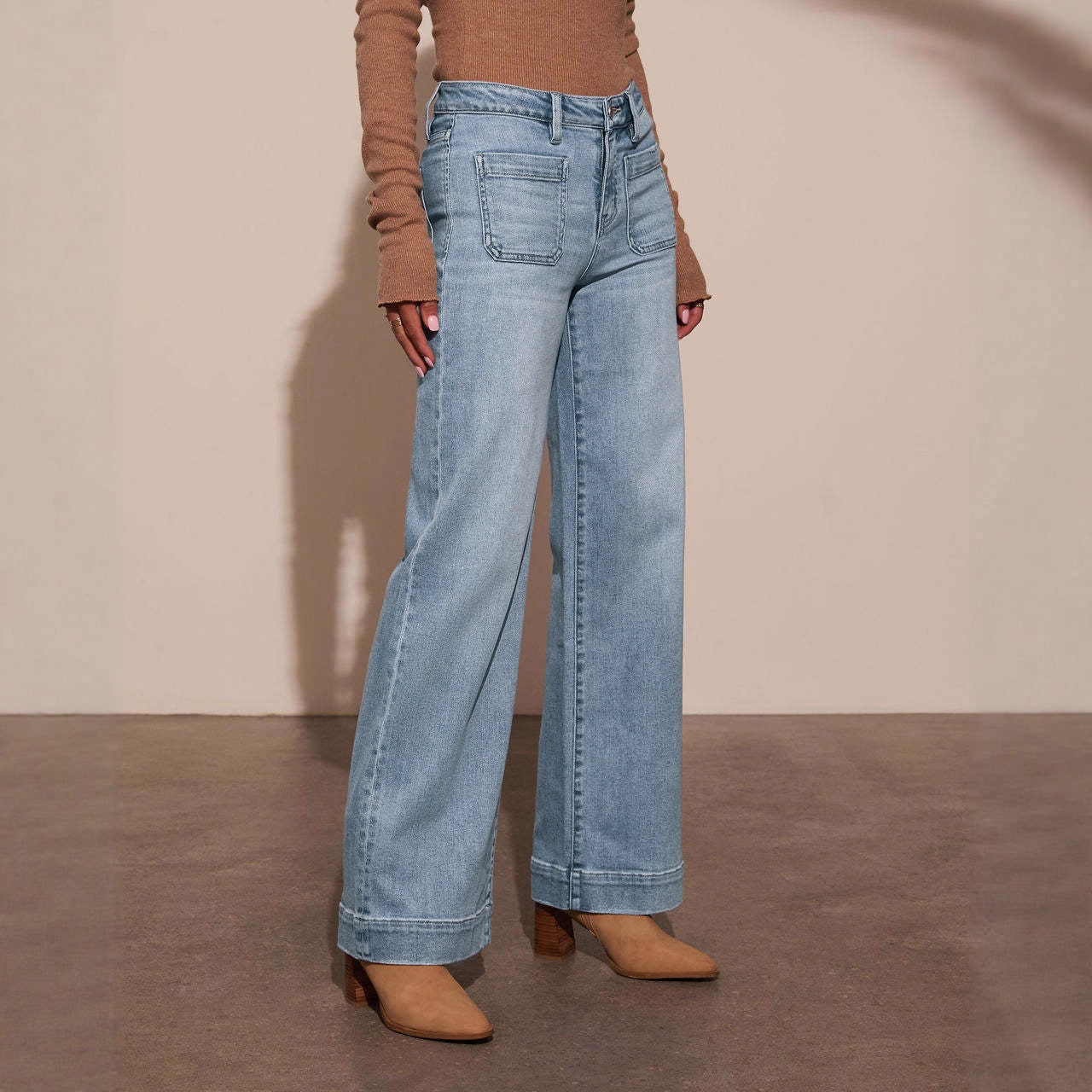 De Milana Jeans is een high-waist wide leg model dat moderne elegantie combineert met een vleugje vintage karakter. De diepe voorzakken geven de broek een stoere uitstraling, terwijl de soepel vallende pijp zorgt voor een slank, verlengend silhouet. Gemaakt van stevige maar comfortabele denim die mooi in vorm blijft, is deze jeans perfect voor zowel dagelijkse looks als meer geklede outfits. De Mila is een echte essential voor vrouwen die stijl en comfort zoeken in één tijdloze broek.